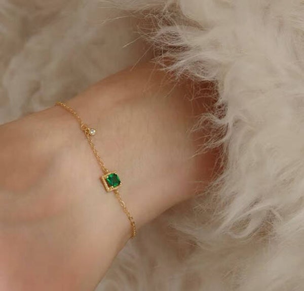Bracelet chaine doré pierre verte et pierre blanche.